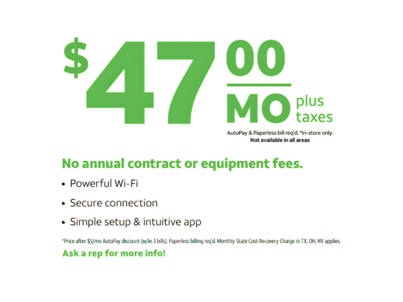 First month service charge and tax due at sale. Terms & restrictions apply.